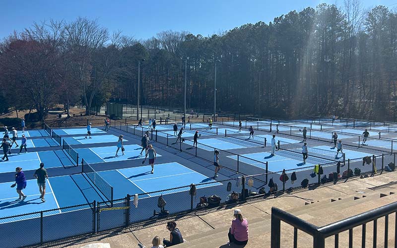 Looking for a fun and easy way to get active? Learn and play pickleball on one of the 16 lighted pickleball courts at Sandy Springs Racquet Center in Sandy Springs, GA!